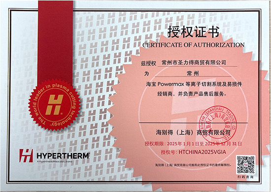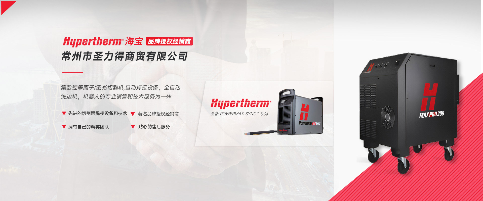 常州市圣力得商贸有限公司是一家集数控等离子/激光切割机,自动焊接设备,全自动铣边机,机器人的专业销售和技术服务为一体的公司。本公司是世界品牌Hypertherm(美国海宝)公司的授权经销商?! 」臼且恢Ъ际跷榷ā⒎裼帕肌⒏挥谐木⑼哦?。公司致力于将国外先进的切割跟焊接设备和技术介绍给中国的机器制造商和终端用户,并为用户提供品质的产品和完善的售后服务?! 」局饕硪韵虏罚骸 ?.美国海宝Hypertherm等离子机用电源,手持电源,原装易损件及备件 2.韩国赛拉科(CERACO)铣边机,南京顶瑞自动焊接小车 3.迈誓坦(MicroStep),日本田中(TANAKA),武汉法利莱(FARLEY-LASERLAB),江苏博大品牌等离子切割机,激光切割机及维修配件?! ?.美国海宝,美国飞马特,凯尔贝等原装正品易损件及配件 5.激光切割机,等离子切割机,火焰切割机升级,安装与调试及技术升级改造项目 6.机器人焊/切生产线 热忱欢迎广大用户前来询价及洽谈。